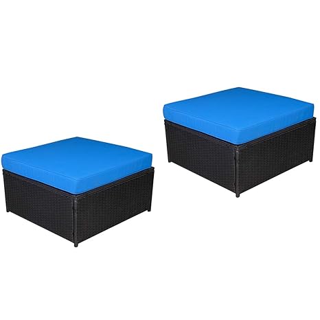 Mcombo Outdoor Rattan Wicker Sofa Couch Patio Furniture Chair Garden Sectional Set With Waterproof Cushions Diy Ottoman Blue 6088
