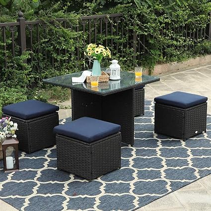 Phi Villa 5 Piece Patio Sectional Conversation Sets Rattan Outdoor Furniture Dining Set Support 300 Lbs