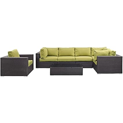 Modway Convene Wicker Rattan 7 Piece Outdoor Patio Sectional Sofa Furniture Set In Espresso Peridot