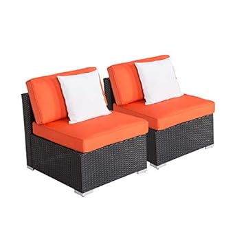 Patio Furniture Sets All Weather Outdoor Sectional Sofa Wicker Rattan Patio Conversation Set 2 Pieces Orange