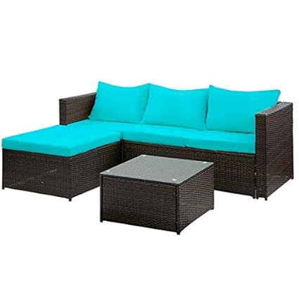 Amazon Com 3 Pieces Outdoor Sectional Sofa Rattan Furniture
