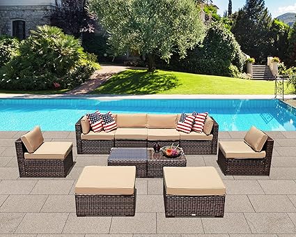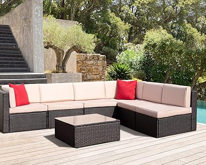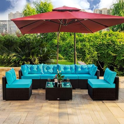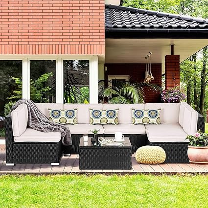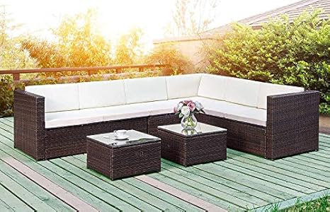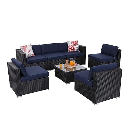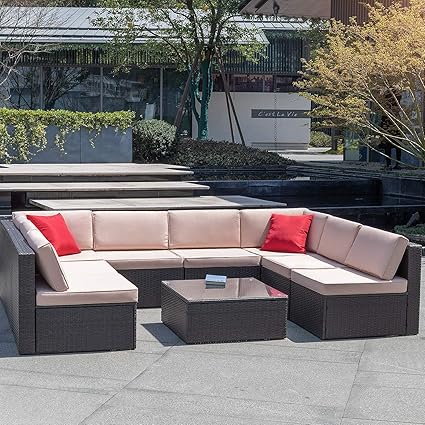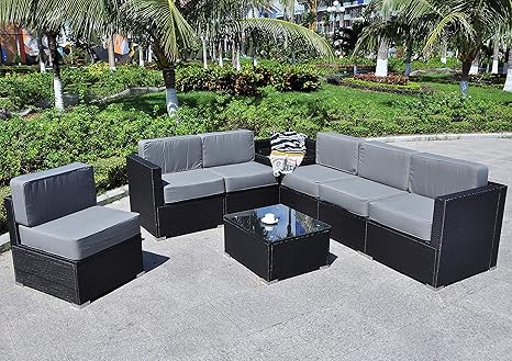 Peach tree 7 pcs outdoor patio pe rattan wicker sofa sectional furniture set with 2 pillows and tea table. Free shipping by amazon. More buying choices cdn 8488 5 used new offers.