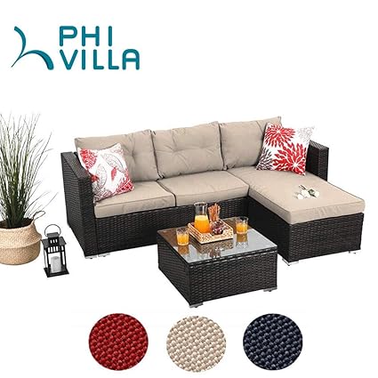Phi Villa 3 Piece New Outdoor Furniture Sectional Sofa Patio Set With Upgrade Rattan Wicker Beige