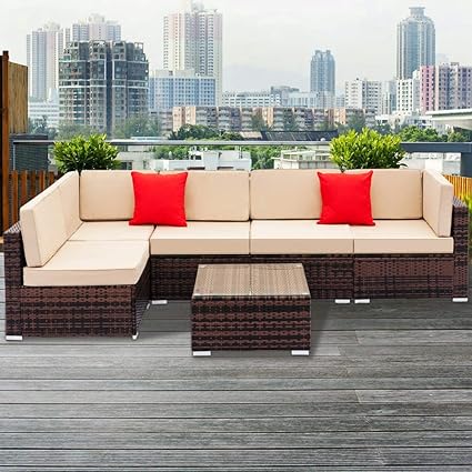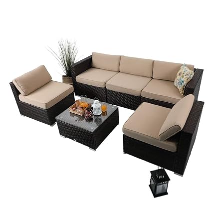 Flamaker 6 Pieces Patio Furniture Set Outdoor Sectional Sofa Outdoor Furniture Set Patio Sofa Set Conversation Set With Cushion And Table Beige
