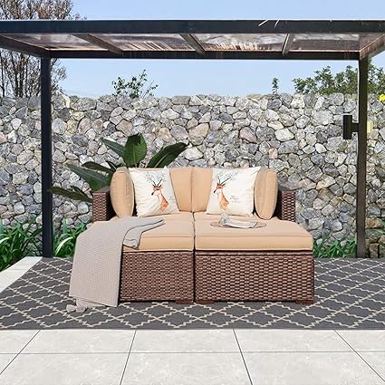 Tenozek Patio Loveseat 2 Piece Outdoor Furniture Sectional Set All Weather Brown Pe Wicker For Backyard Pool Brown 2 Seats