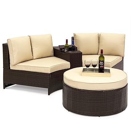 Best Choice Products Wicker Curved Corner Patio Sectional Set With Cushions And Round Ottoman Table Tan And Brown