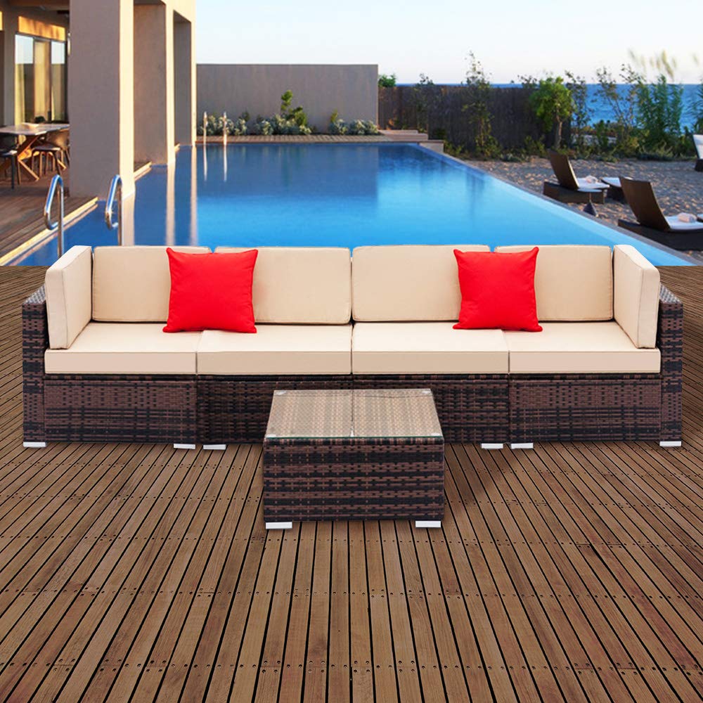 Tenozek Outdoor Sectional Patio Furniture Set All Weather Pe Rattan Wicker Sofa Set For Backyard Pool Brown 5 Seats Coffee Table