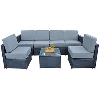 Outdoor Sofa Patio Furniture Set 7pcs Outdoor Gray Wicker Sofa Set Sectional Furniture Conversation Set
