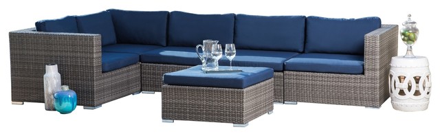 Abbyson Living Shermans Outdoor Wicker Modular Patio Sectional Gray Navy