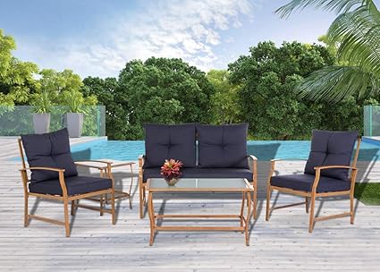 Manor Park 4 Piece Teak Wood And Metal Outdoor Patio Sectional With Cord Accents