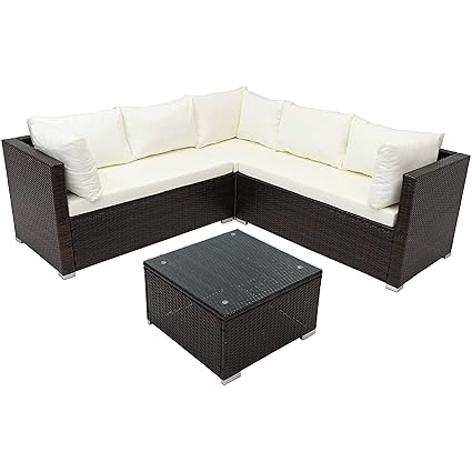 Walsunny Outdoor Black Rattan Sectional Sofa Patio Wicker Furniture Set With Tea Table Washable Couch Cushions Khaki