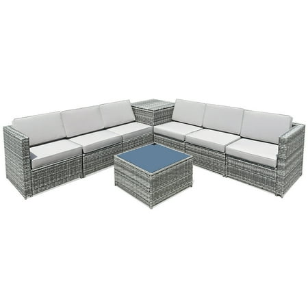 Gymax Set Of 8 Gray Rattan Wicker Sofa Table Outdoor
