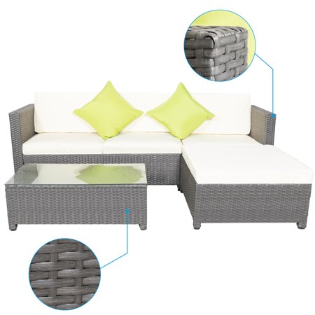 Ktaxon Outdoor Patio Furniture Set 5pc Pe Wicker Rattan Sectional Furniture Set With Cream White Seat And Back Cushions Tempered Glass Table